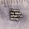Dieser lustige Statement-Pin mit dem Spruch „I have no idea what I’m doing“ bringt ehrlichen Humor und Selbstironie perfekt auf den Punkt. Das schlichte Schwarz-Weiß-Design sorgt für hohe Lesbarkeit und macht den Pin zu einem vielseitigen Accessoire für jeden Alltag.